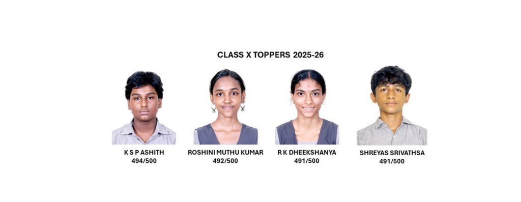 This year too we have 100% pass in the X Board Examination. Toppers: K S P Ashith – 494/500 Roshini Muthu Kumar – 492/500 R K Dheekshanya and Shreyas Srivathsa – 491/500 SUBJECT WISE : HIGHEST MARKS SNO SUBJECT MARKS NO.OF STUDENTS 1 English 98 3 2 Hindi 98 1 3 Sanskrit 100 8 […]