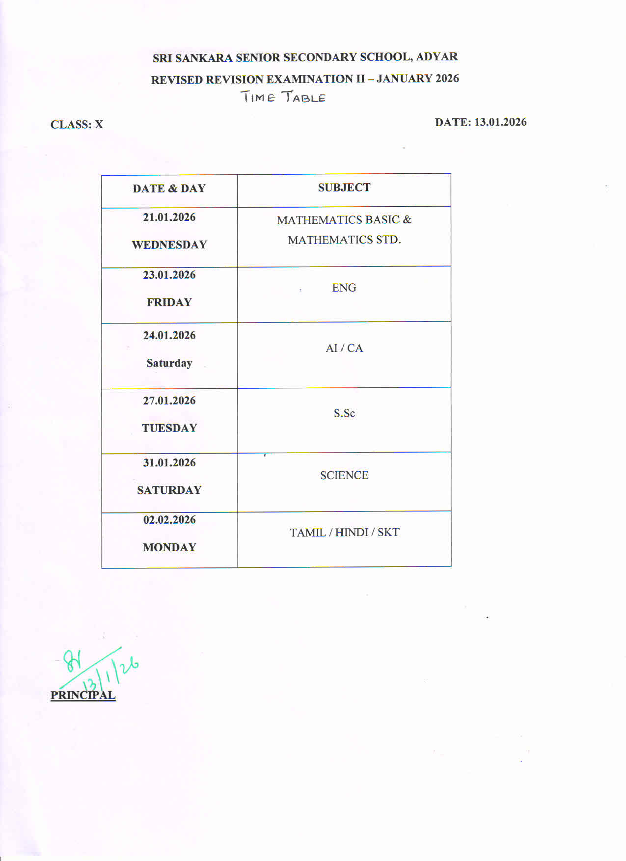 Revised Revision II Examination 2025-26 (STD X)