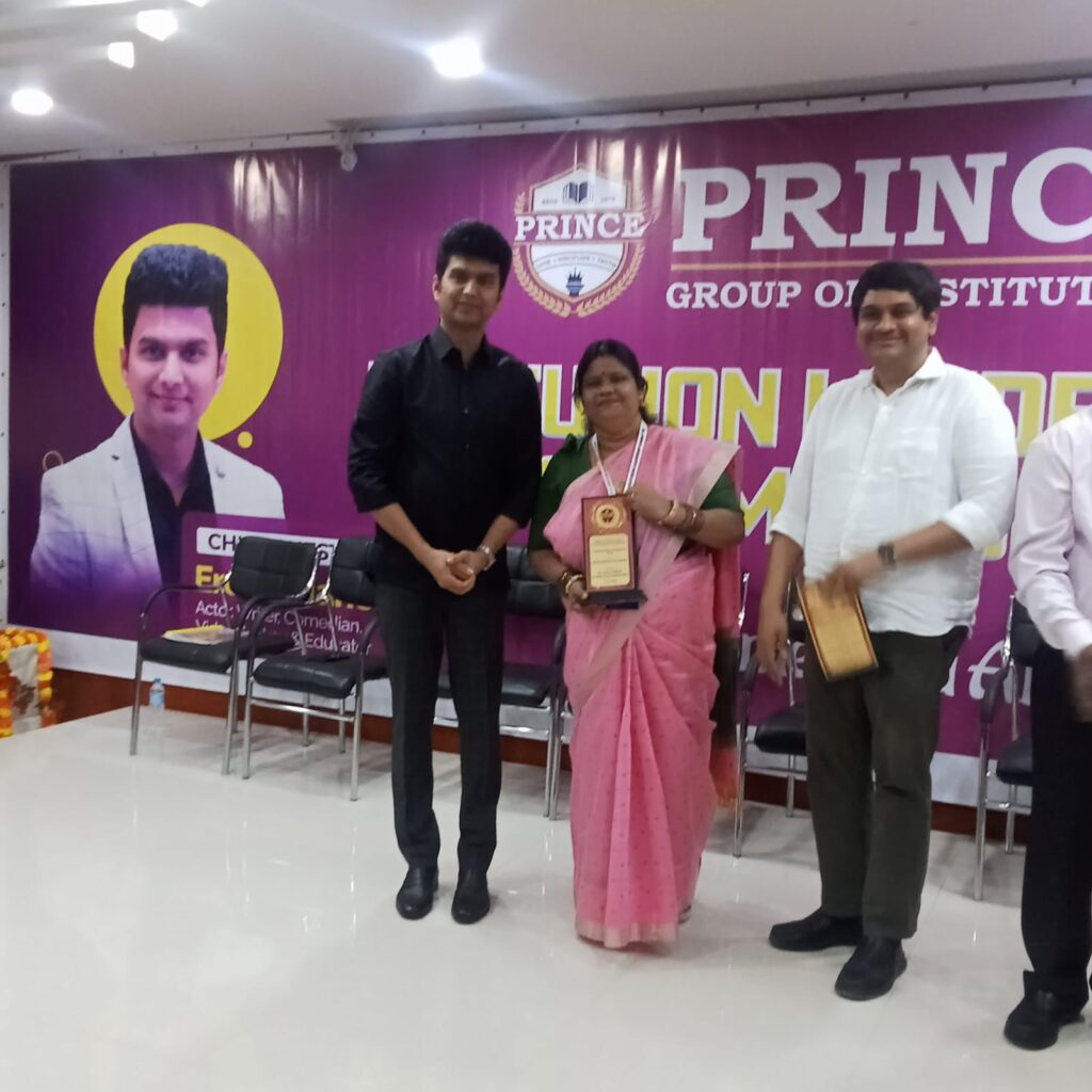 Ms Roopa Ramesh, department of Social Science, received an award for excellence in teaching and commitment at an award ceremony hosted by Prince Venkateshwara Padmavathy Engineering College in February 2026, in recognition of her exemplary service and remarkable dedication to educational excellence.
